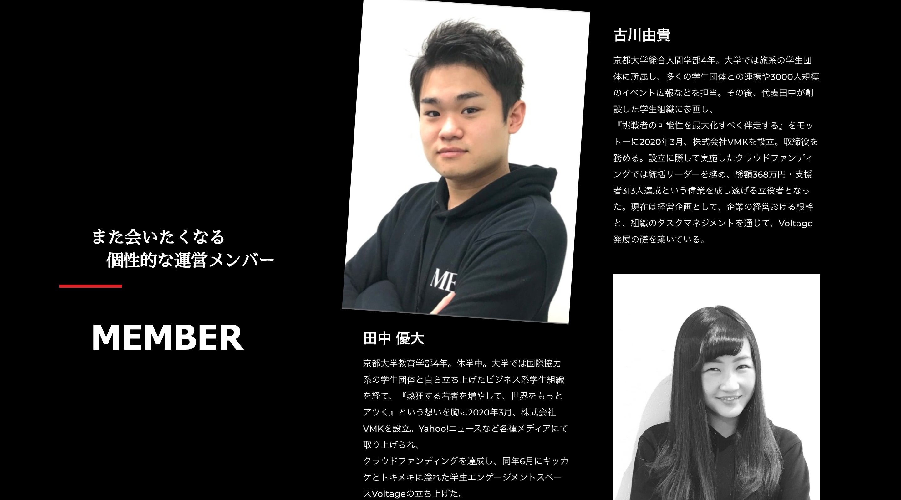 田中優大もしくは古川由貴の写真へカーソルを動かしてみてください!