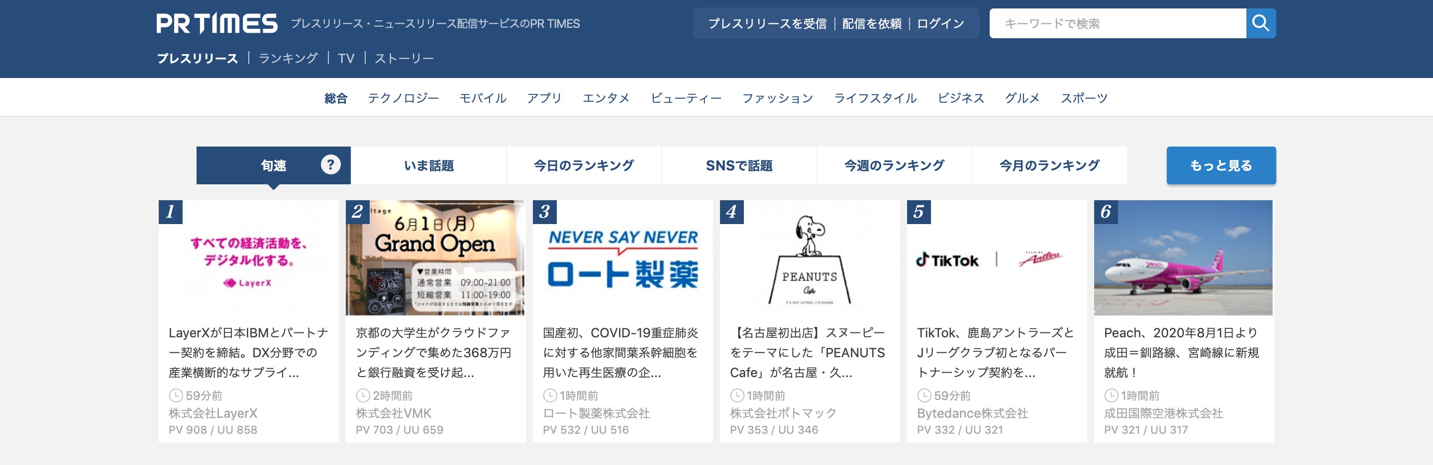 本日、PR TIMESをプレスリリースしたのですが、「旬速<2時間以内に配信されたプレスリリースのアクセス数ランキング>」カテゴリー第2位にランクイン!