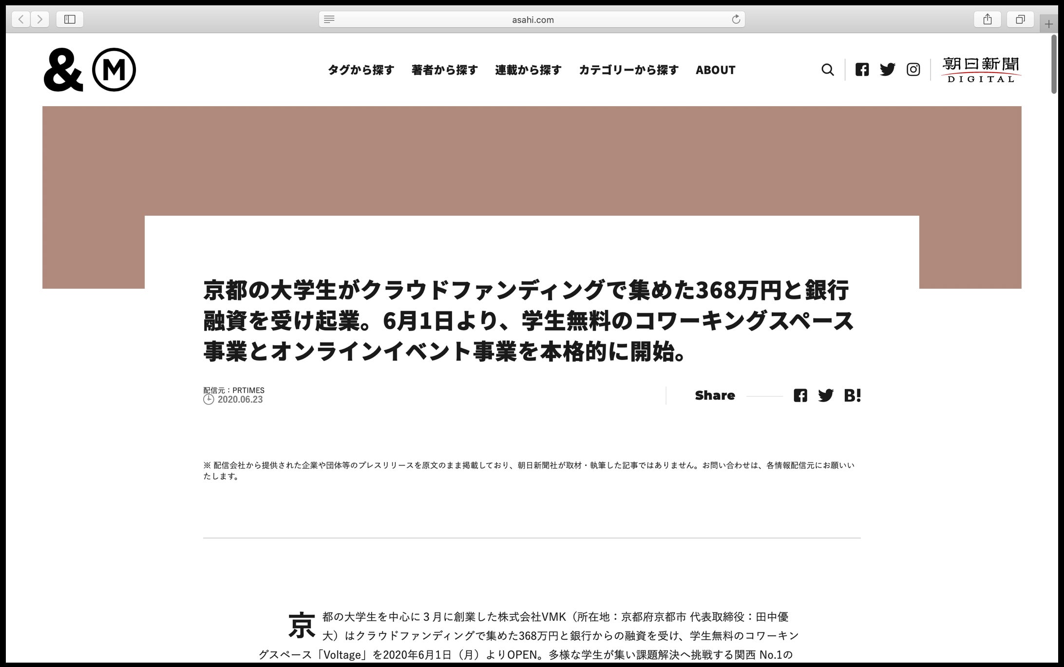 ▼朝日新聞デジタル