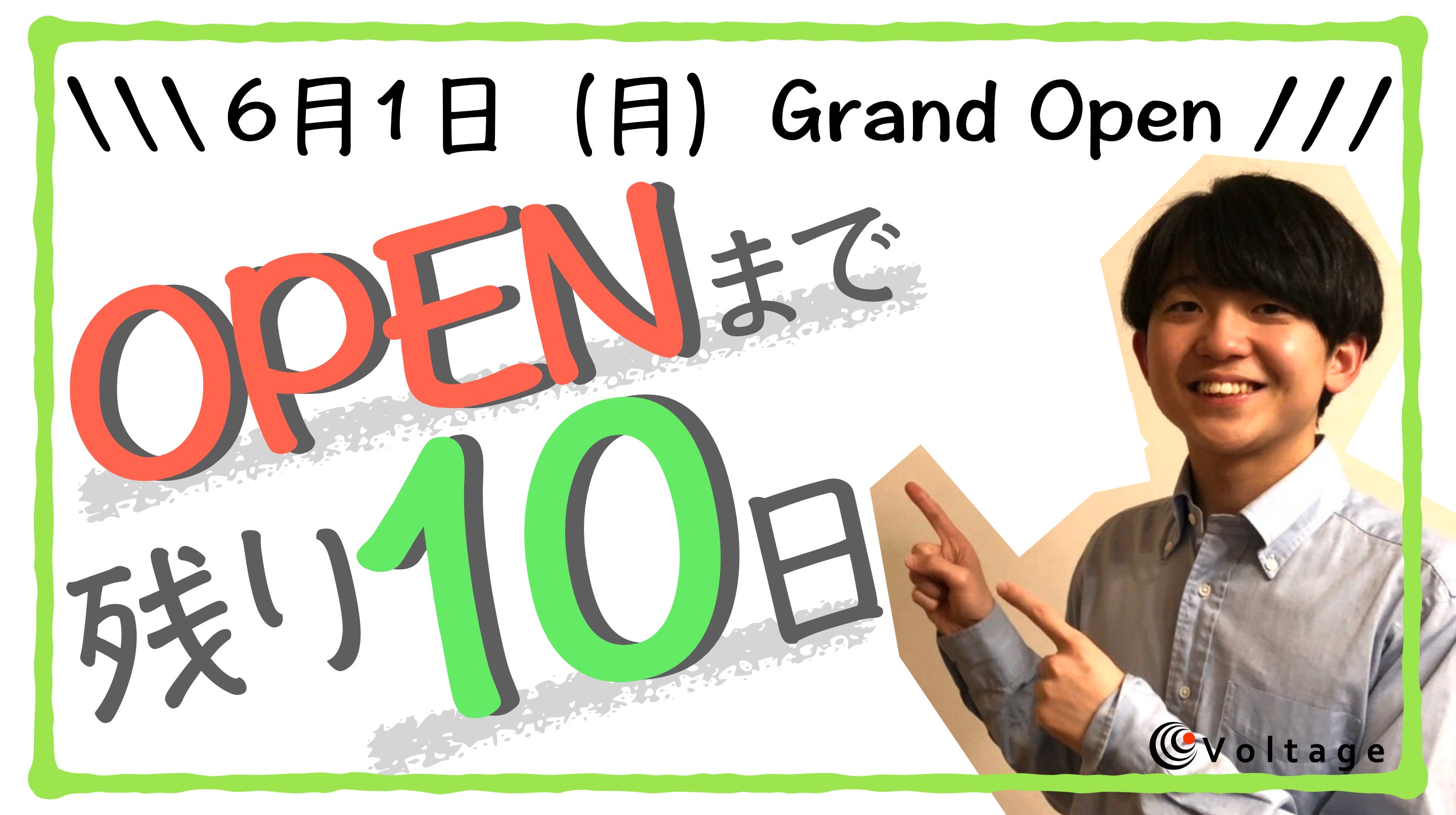 皆さん!お久しぶりです!!Voltage最年少営業担当の古林樹龍です!Voltageがオープンする6/1まで残り9日となりました。ワクワクですね〜!!!実は、僕はコロナの影響で地元の岡山にいてVoltageに行けてないんです。早く行きたくて行きたくてうずうずしてます。みなさんもそんな感じではないでしょうか?本当に時が過ぎるのは早いですね。このスペースをつくり、世界を熱狂の渦に巻き込むために、グラウンドファンディングを始め、見事達成。そして、あっという間にオープンです。楽しくて、毎日ワクワクしていると時間が経つのがいつもより早いです。これがいいことなのか悪いことなのか。笑人生楽しすぎたら、あっという間におじいさんになってそうです笑Voltageがオープンできないからこそ、「Zoom戦略会議」や「Twitter就活」などのオンラインイベントを行いました。オンラインにも関わらず満足度がとても高かったです。オフラインになって、Voltageメンバーの熱量、それに関わる学生や企業さんの熱量を肌で感じることができるようになったら、とんでもないことになりそうです笑楽しみでしょうがない!!応援してくださっている皆さま!!是非、Voltageで語り合いましょう!!その日をメンバー全員楽しみにしています!!これからも、よろしくお願いします。
