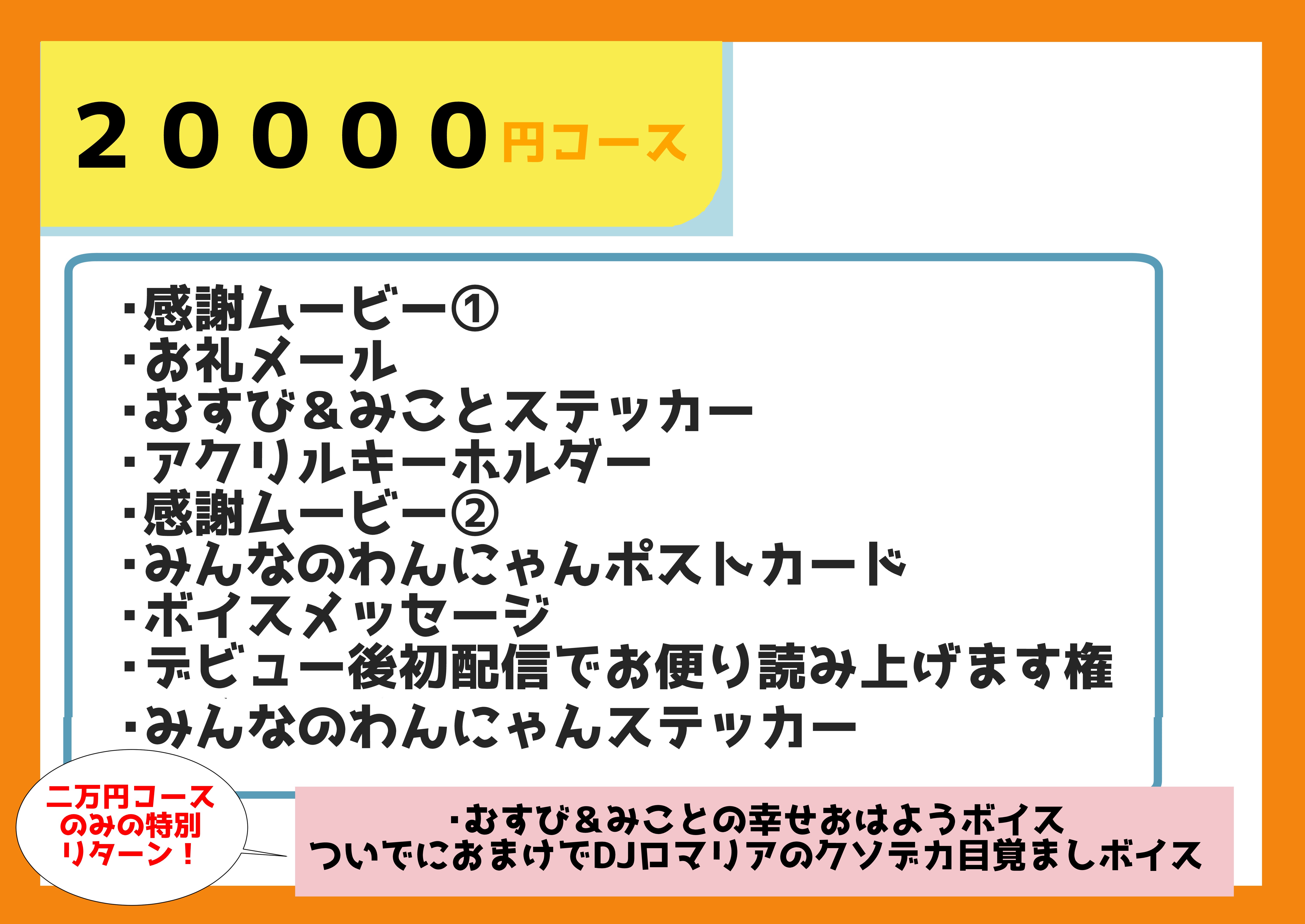 ◆特別リターンにつきましては、20000円コースを支援してくださった方のみへのリターンとなります。