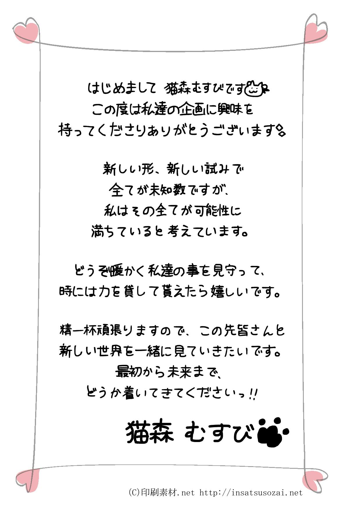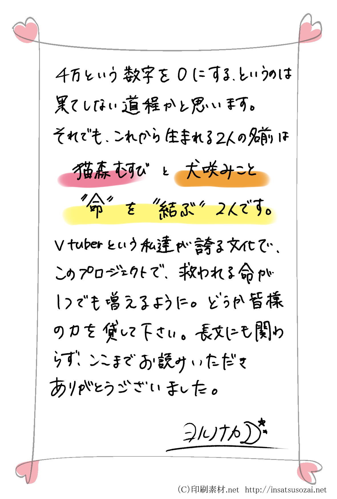 ◆【猫森むすび、犬咲みこと、DJロマリアより直筆メッセージ】猫森むすび、犬咲みこと、DJロマリア(特別協力Vtuber)から直筆のメッセージが届きます。