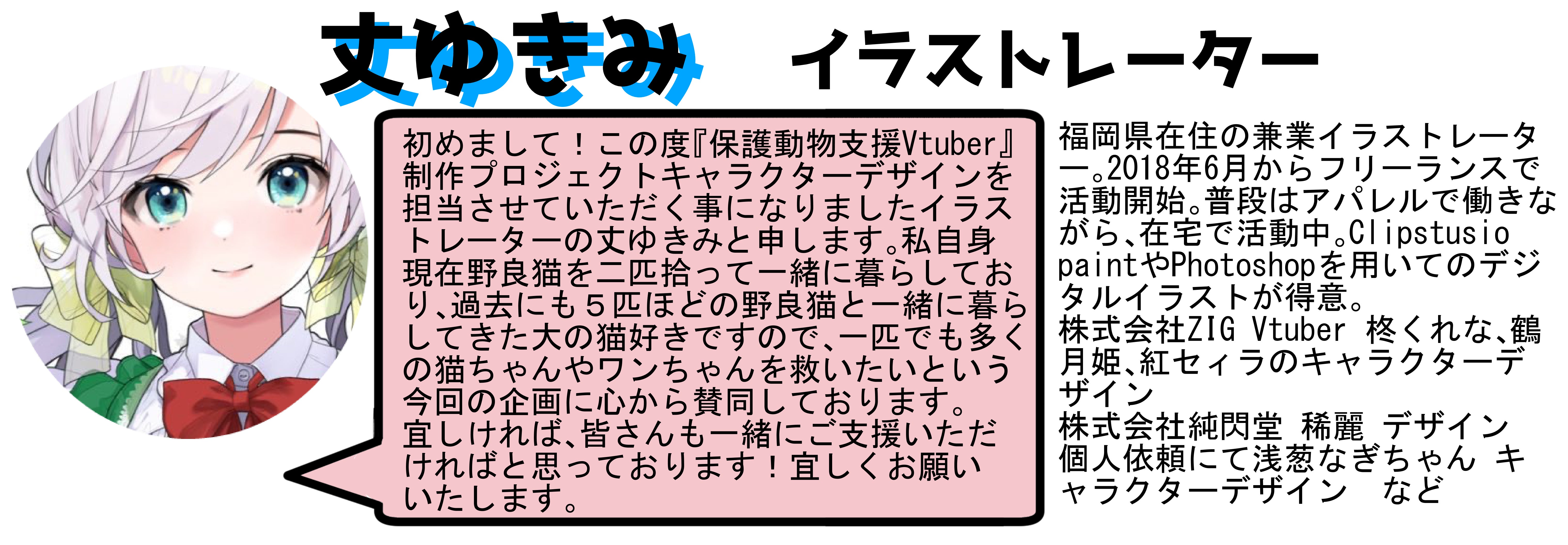 ※トップビジュアルやデフォルメイラストはヨルノナカによる制作物であり、実際にデビューの際はイラストを元に丈ゆきみ様によるキャラクターデザインが改めて行われます。(つまりもっと可愛くなります!)