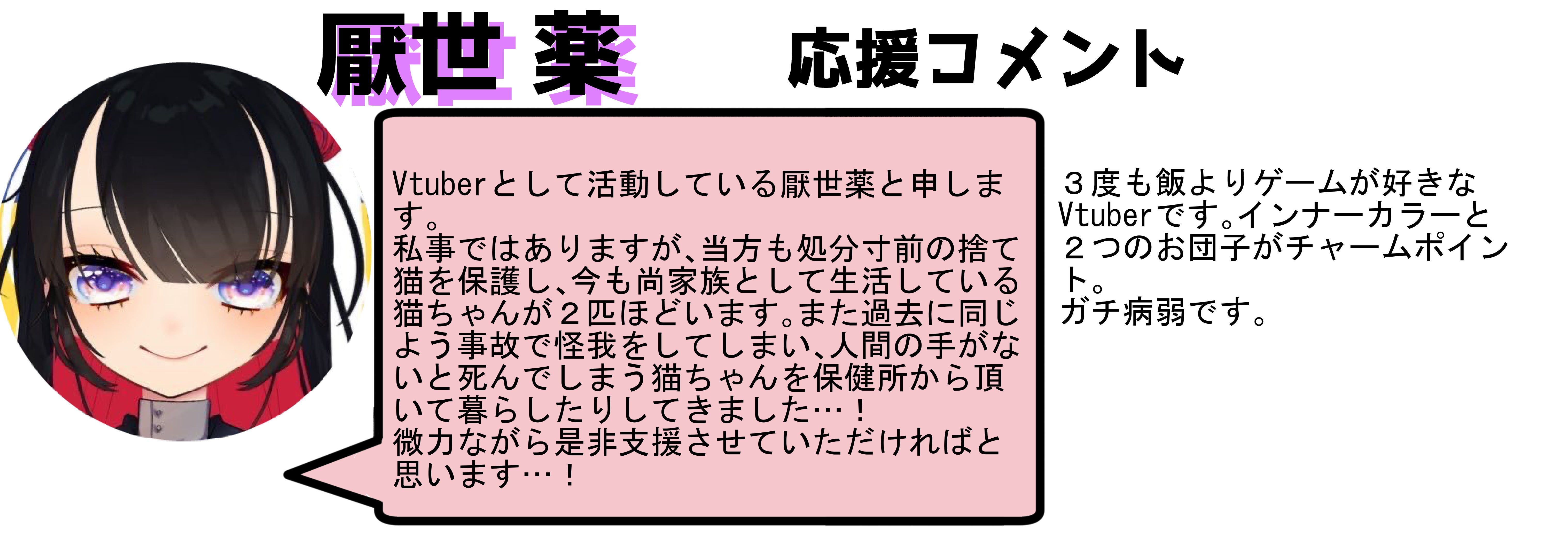 ★2/19追加 Vtuber厭世 薬さん、DJパルムさんより応援メッセージをいただきました★