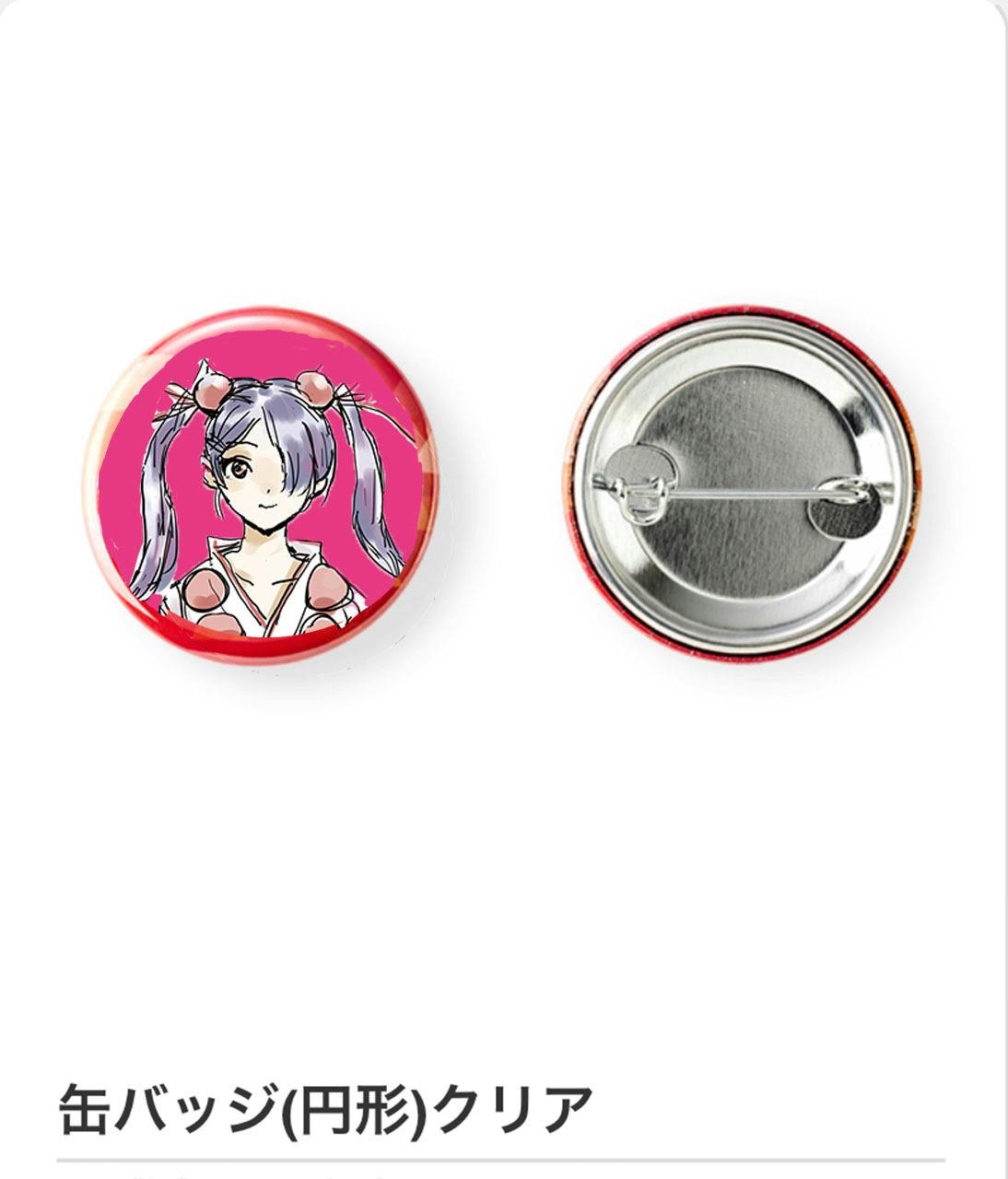 缶バッチとスタンド付キーホルダーの商品イメージです。