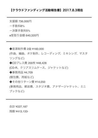 主に音楽製作、活動に付随する製作物、リターンの資金として使わせていただきます。
