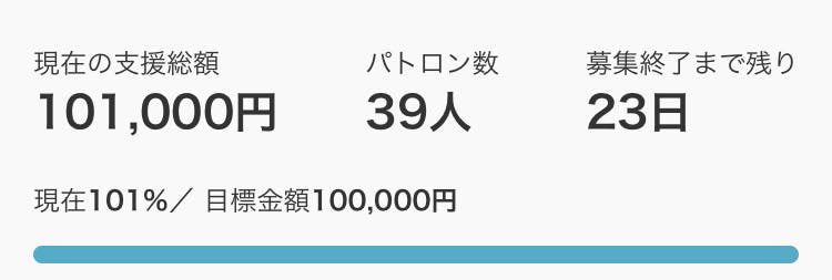 クラファン公開から24時間で目標金額64%!28人ものパトロンのご支援をいただきました!