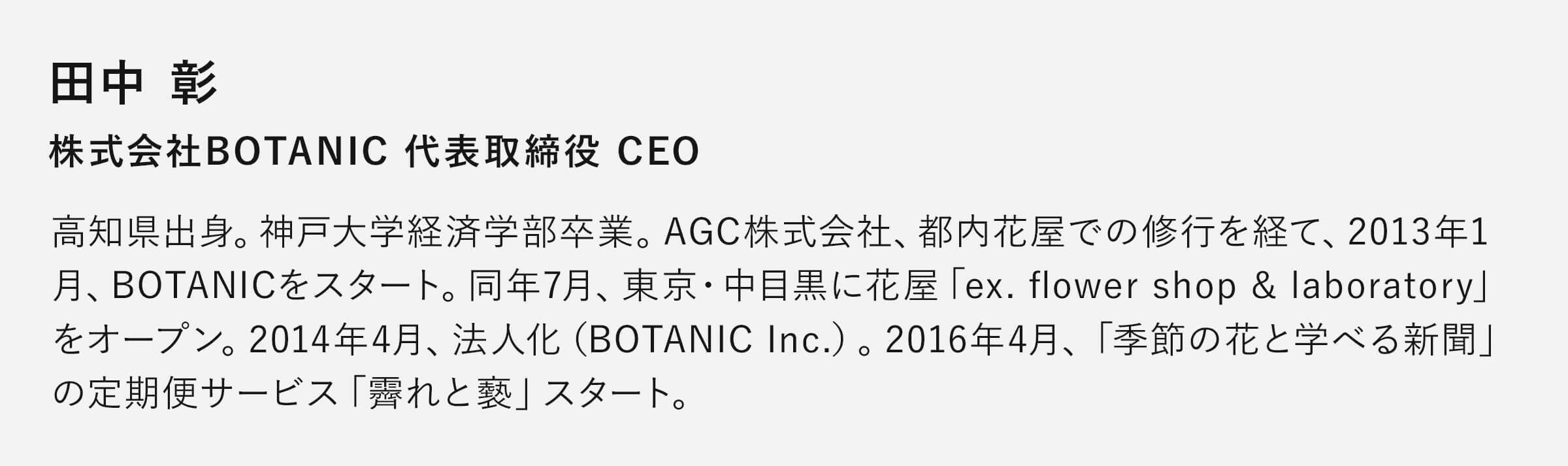 はじめまして!株式会社BOTANICの田中 彰と申します。