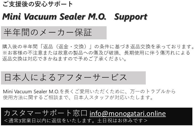 2020/07/01 13:03ご支援いただきました皆さまへLEDライト付きミニ真空パック器【Mini Light Sealer M.O.】にご支援いただきまして誠にありがとうございます。大変お待たせして申し訳ございません。本日、製品の配送を完了いたしました。製品がお手元に届きますまで今しばらくお待ちくださいませ。『Mini Light Sealer M.O.』が皆さまのお役に立てますことを願っております。製品に関するお問い合わせなどございましたら下記までご連絡くださいませ。===================MONOGATARIお客様窓口Mail: info@monogatari-japan.com <営業時間> 平日:10:00~18:00 土日祝:お休み===================今後とも弊社の製品をどうぞよろしくお願いいたします。MONOGATARI もっと見る【ご案内】配送スケジュールについて②