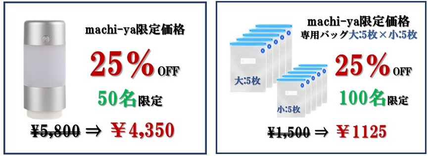 ◆machi-ya限定価格 専用バッグ 25%OFFコース、100名限定