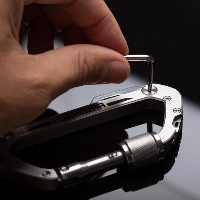 コンピューターで細部まで設計しつくされた一体型ツールGPカラビナには、プラスとマイナスのドライバーもうまく収められています。
