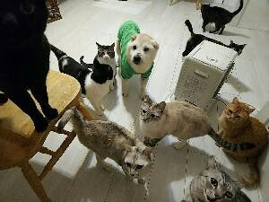 現在犬7匹、猫45匹が家の中を自由に走り回っています。
