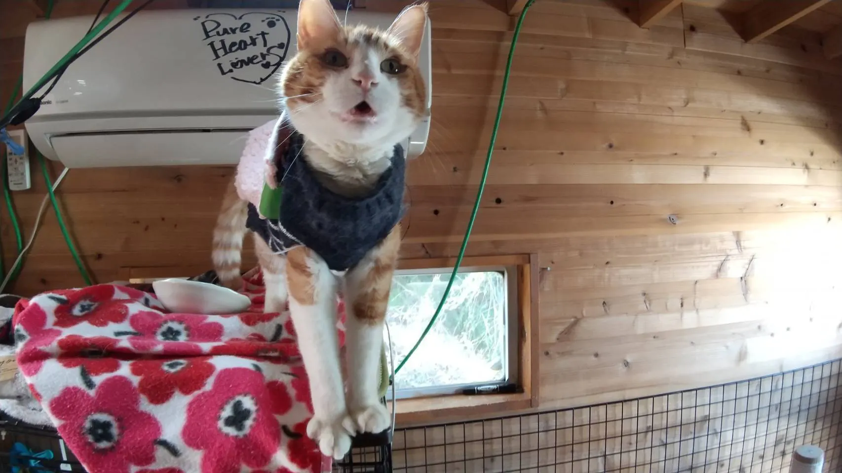 ご飯まだ~?と催促するとらちゃん。くしゃみがあるものの元気です!免疫力低下しているのですぐ風邪ひきます。合併症起こさないように温度管理、体調管理はとても大事なことです。
