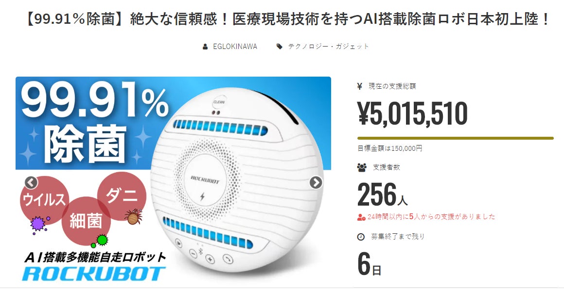 除菌ロボットロックボット(ROCKUBOT)のプロジェクトへのご支援、誠にありがとうございます。たくさんの応援コメント、一つ一つ読ませて頂いております。大変励みになります。心よりお礼申し上げます。