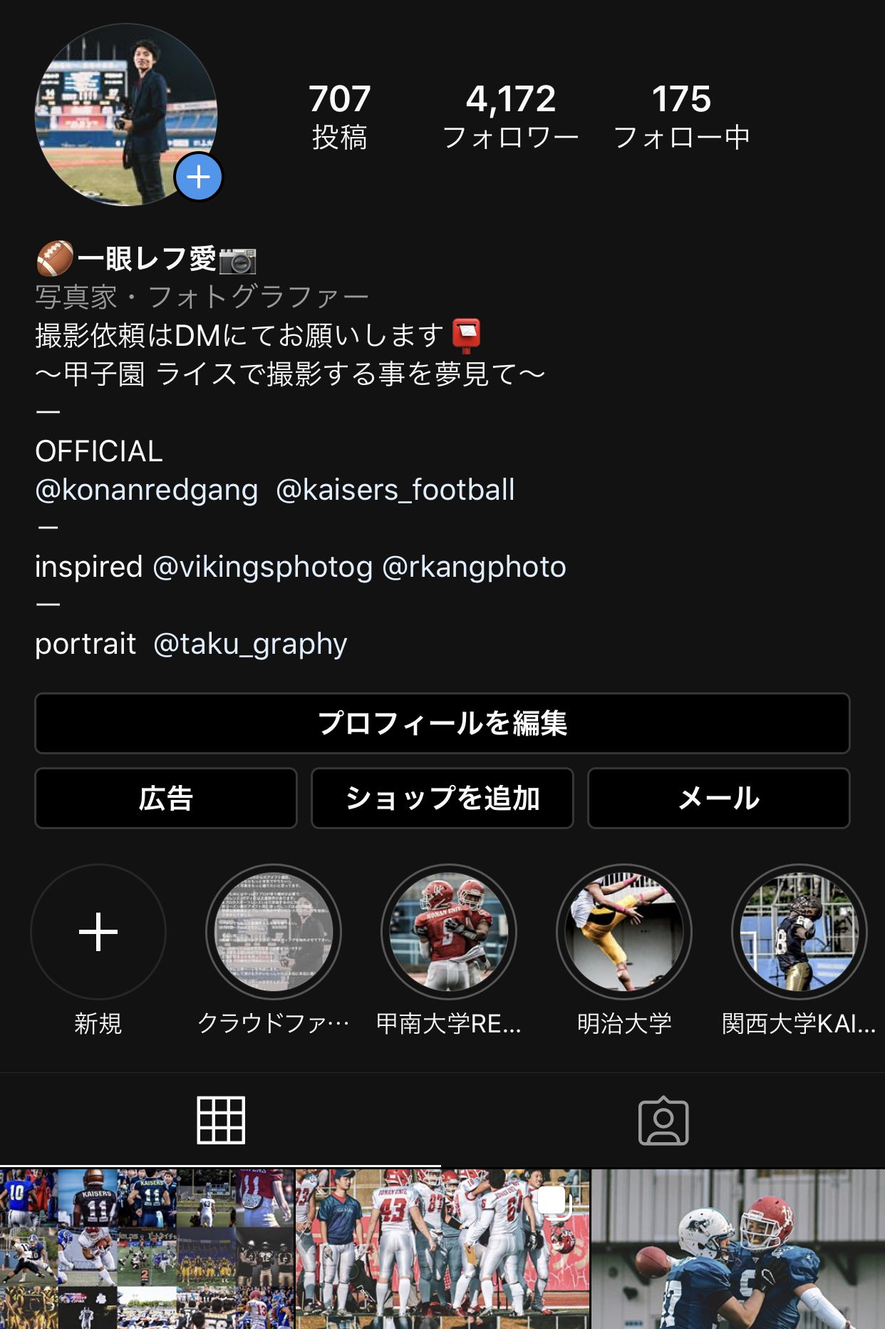 アメフト専用のアカウントを作っていたところ、