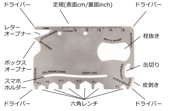 男心をくすぐる便利なマルチツールがつきます。クレジットカードサイズで、KNIGGE(クニッゲ)にぴったり収ります。これさえあれば簡易工具を持ち歩く必要はありません。