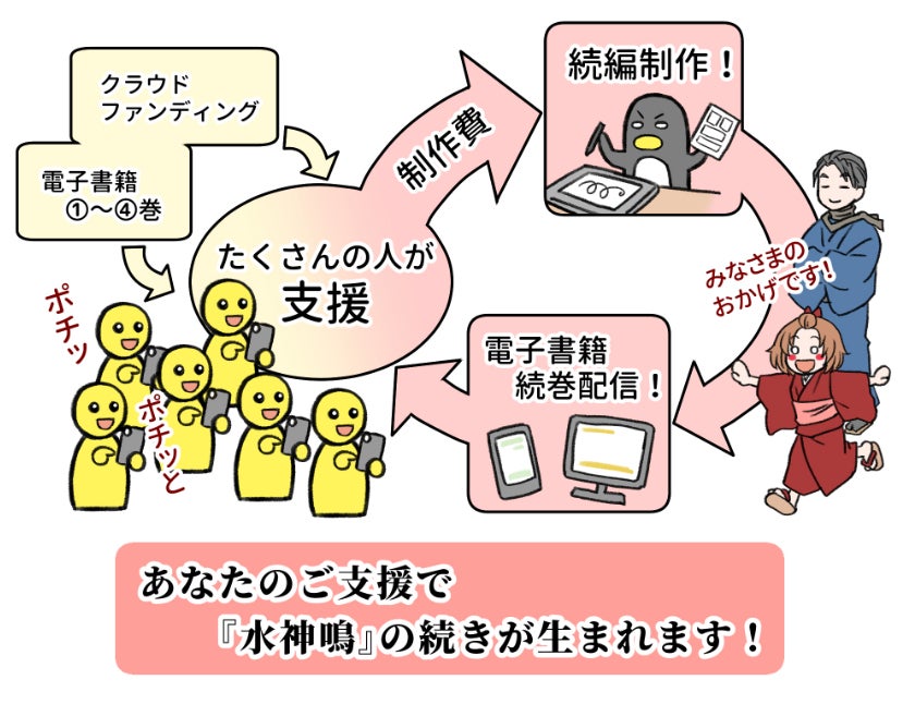 これからの『水神鳴』は、クラウドファンディングの支援金と、今回配信を開始した電子書籍のロイヤリティーが、続編の制作費になります。