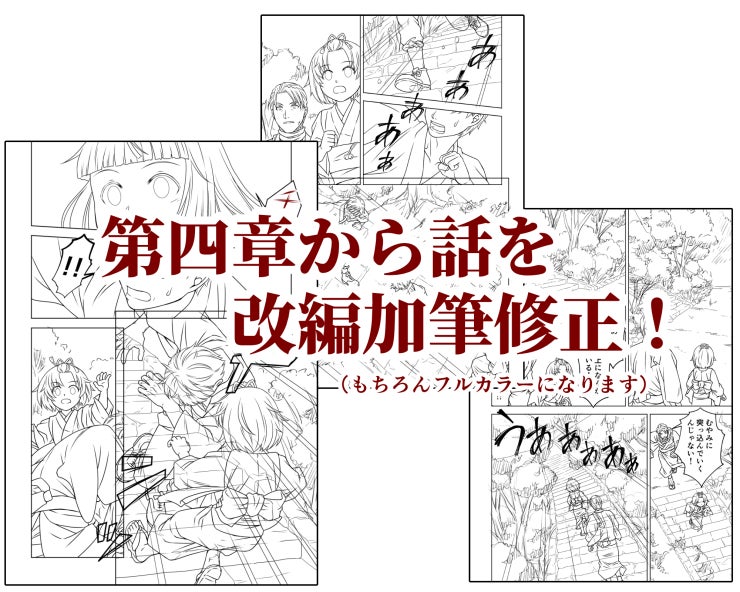 『水神鳴』は第零章から第九章まで連載しましたが、⑤巻収録の第四章はお話を改編加筆修正し、⑥巻収録予定の第五章からは描き下ろしの新章をやる予定です。