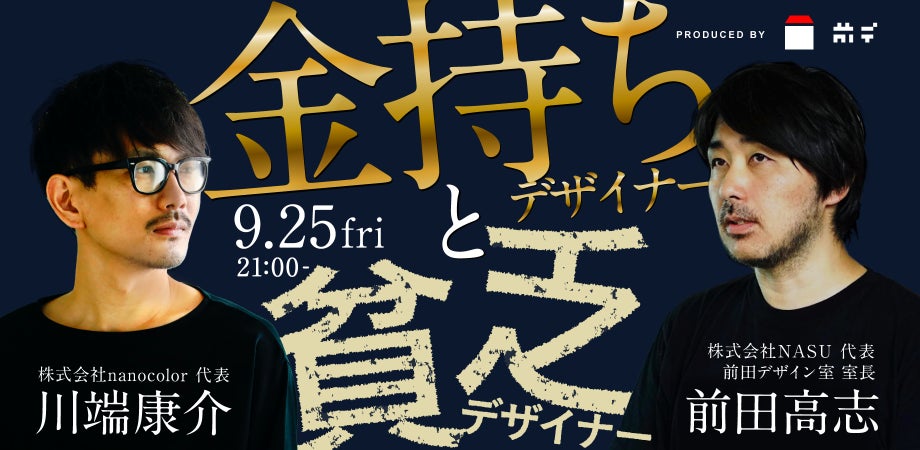 本日21時より、前田デザイン室がプロデュースするオンラインイベントが開催されます。その名も「金持ちデザイナーと貧乏デザイナー」ですっ!