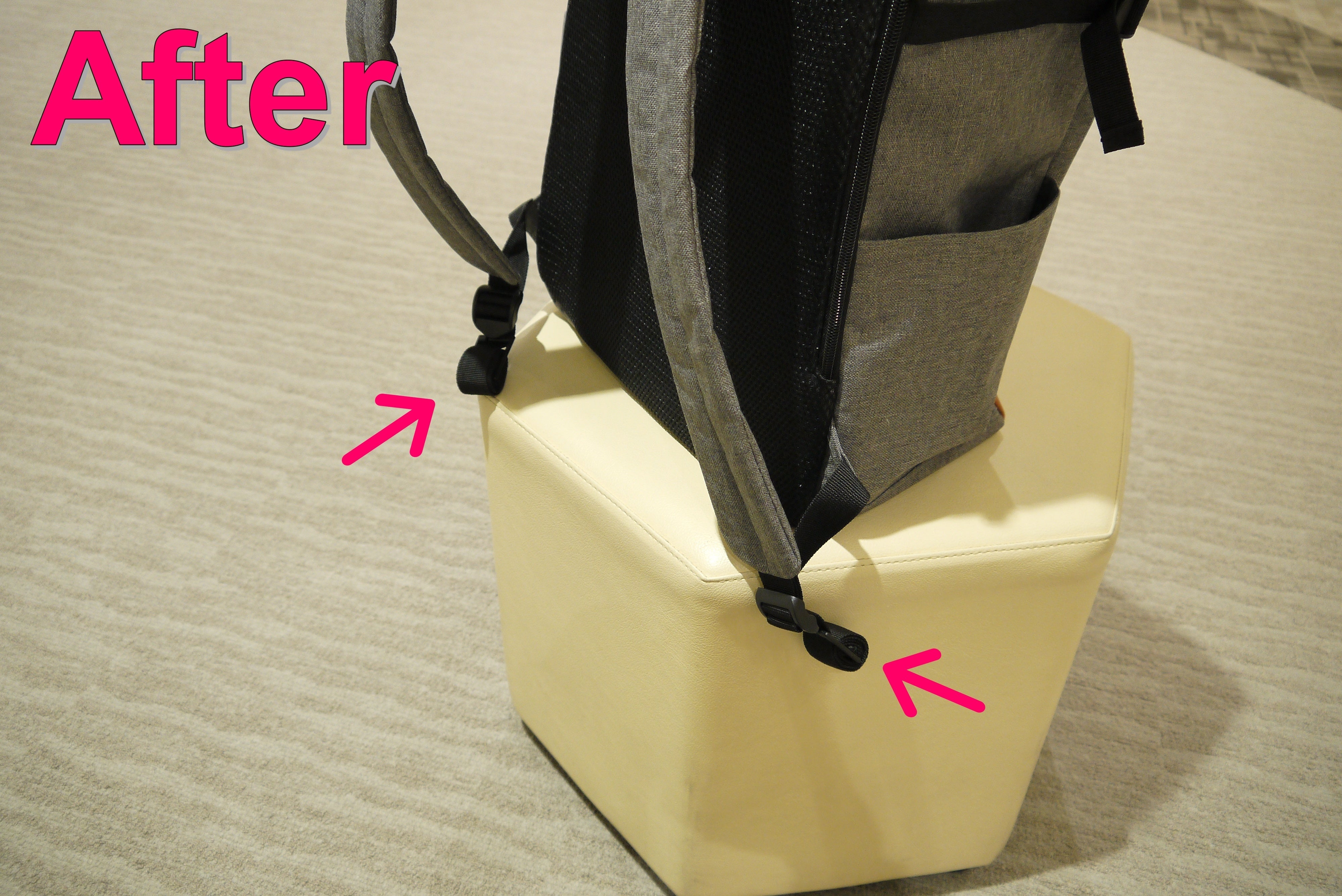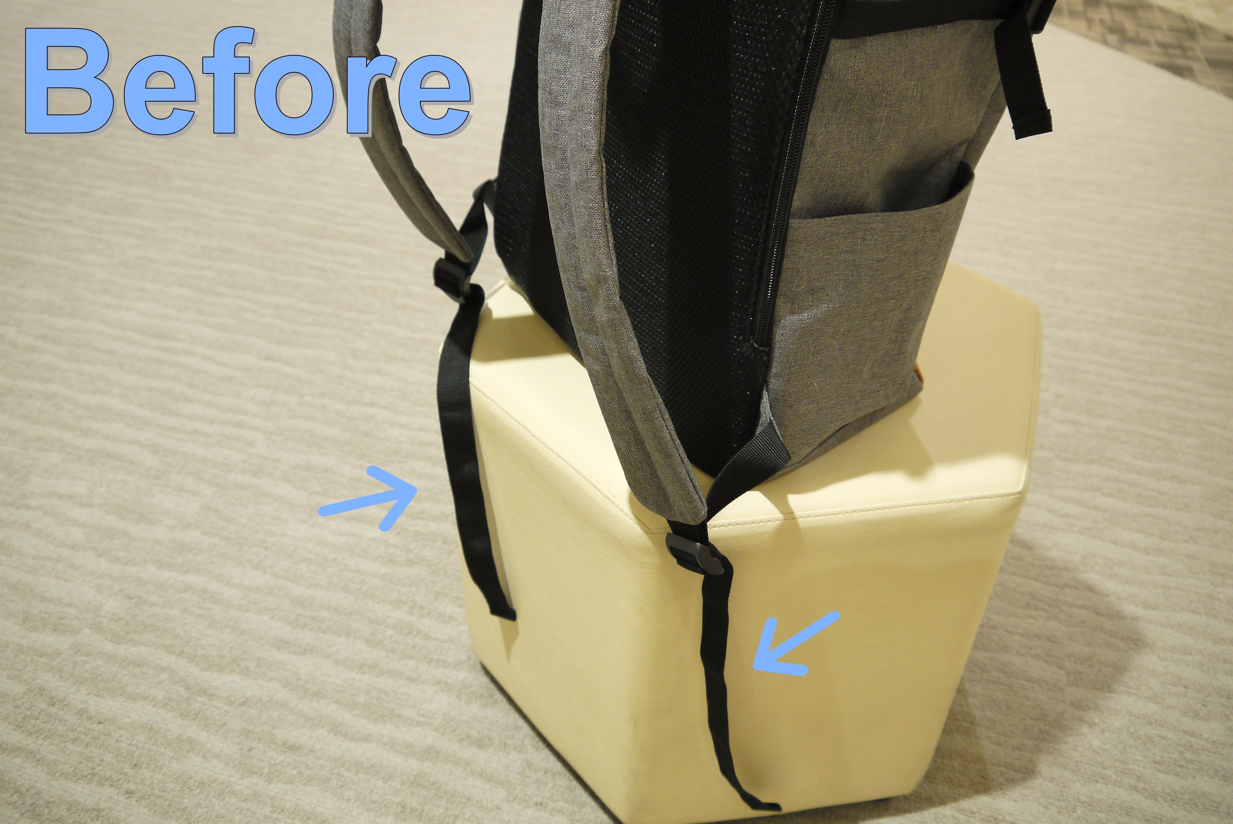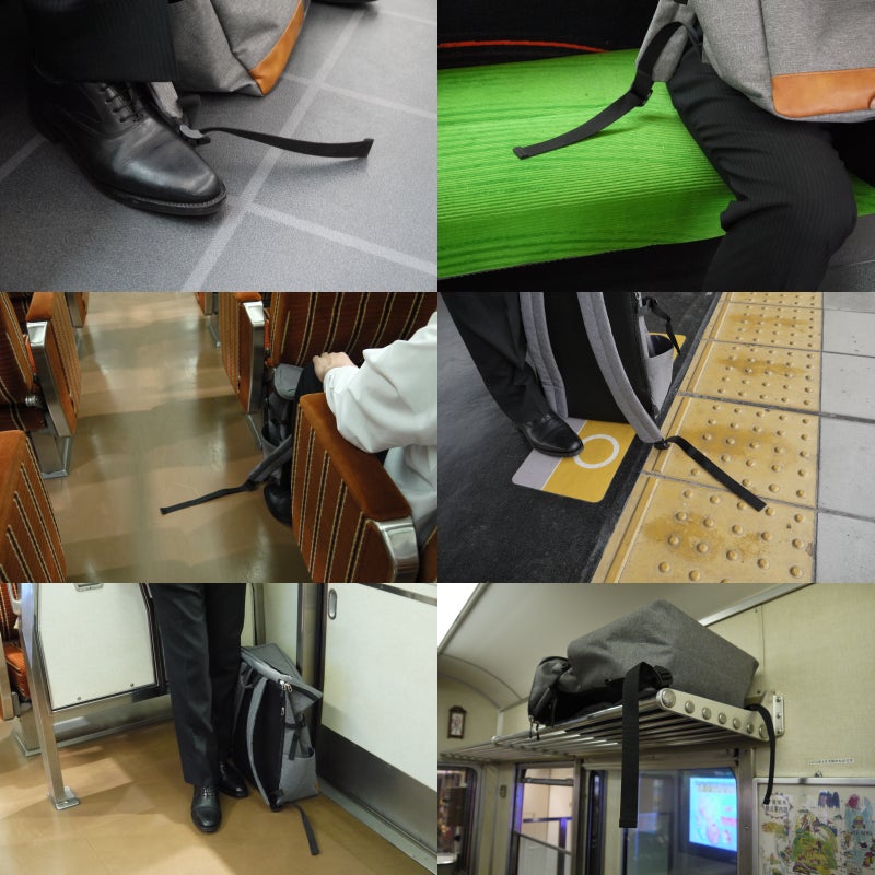 電車で足元に置いたリュックカバンの紐端が四方に広がって、通行の妨げになっていたなんてことはありませんか?ふと気が付くと紐端がとなりの座席にまで伸び広がっていたなんてことありませんか?