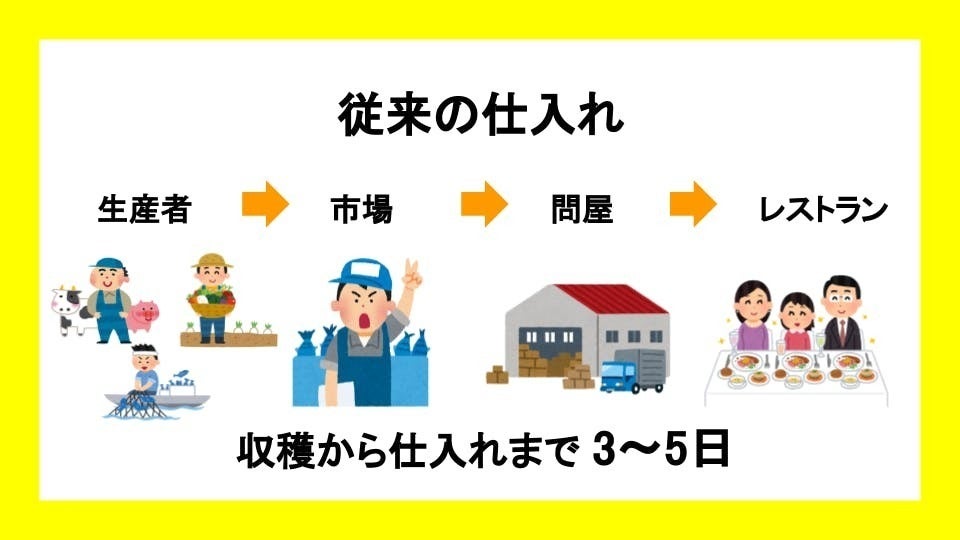 産地直送を実現することで、市場・問屋を経由することによる不要な輸送を減らします