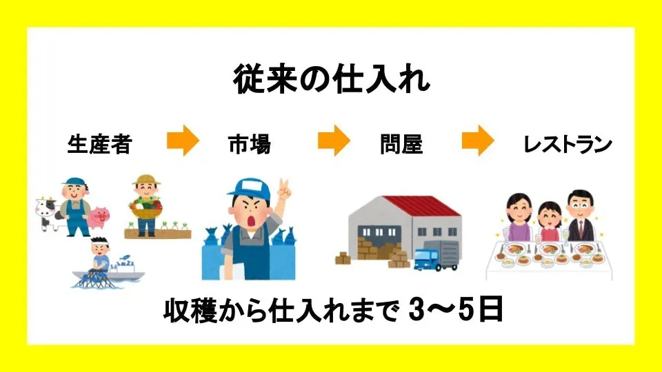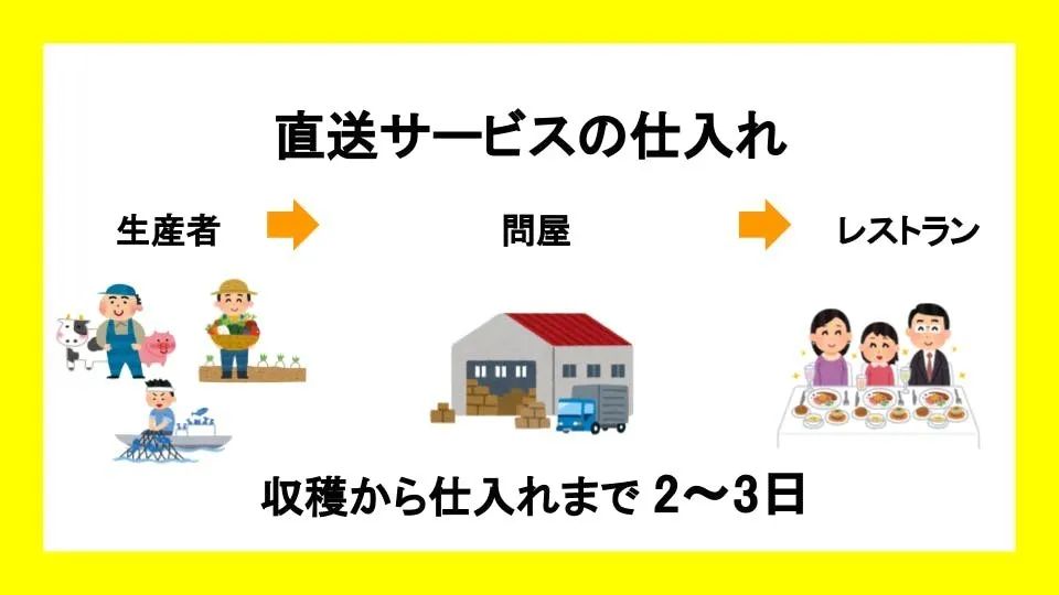 最近流行りの直送サービスにおいても、画像のとおり一度問屋を挟んでいるため収穫から2〜3日が経過しています。