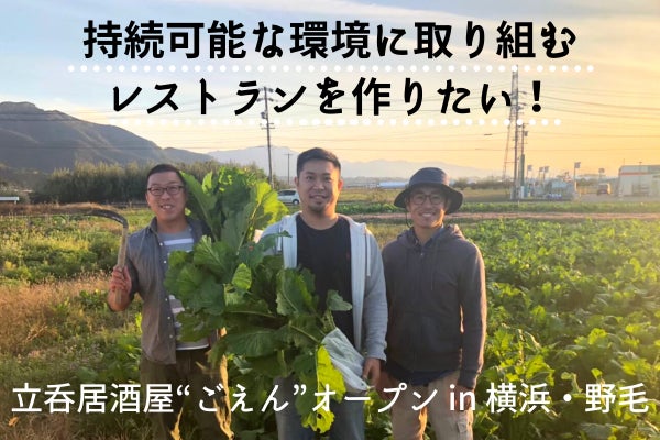そして、その第一歩として、地元である横浜の野毛に立吞居酒屋“ごえん”をオープンしようと思っています。店名には『生産者とのごえん。お客様とのごえん。私たちはごえんを大切にします。』という思いが込められています。