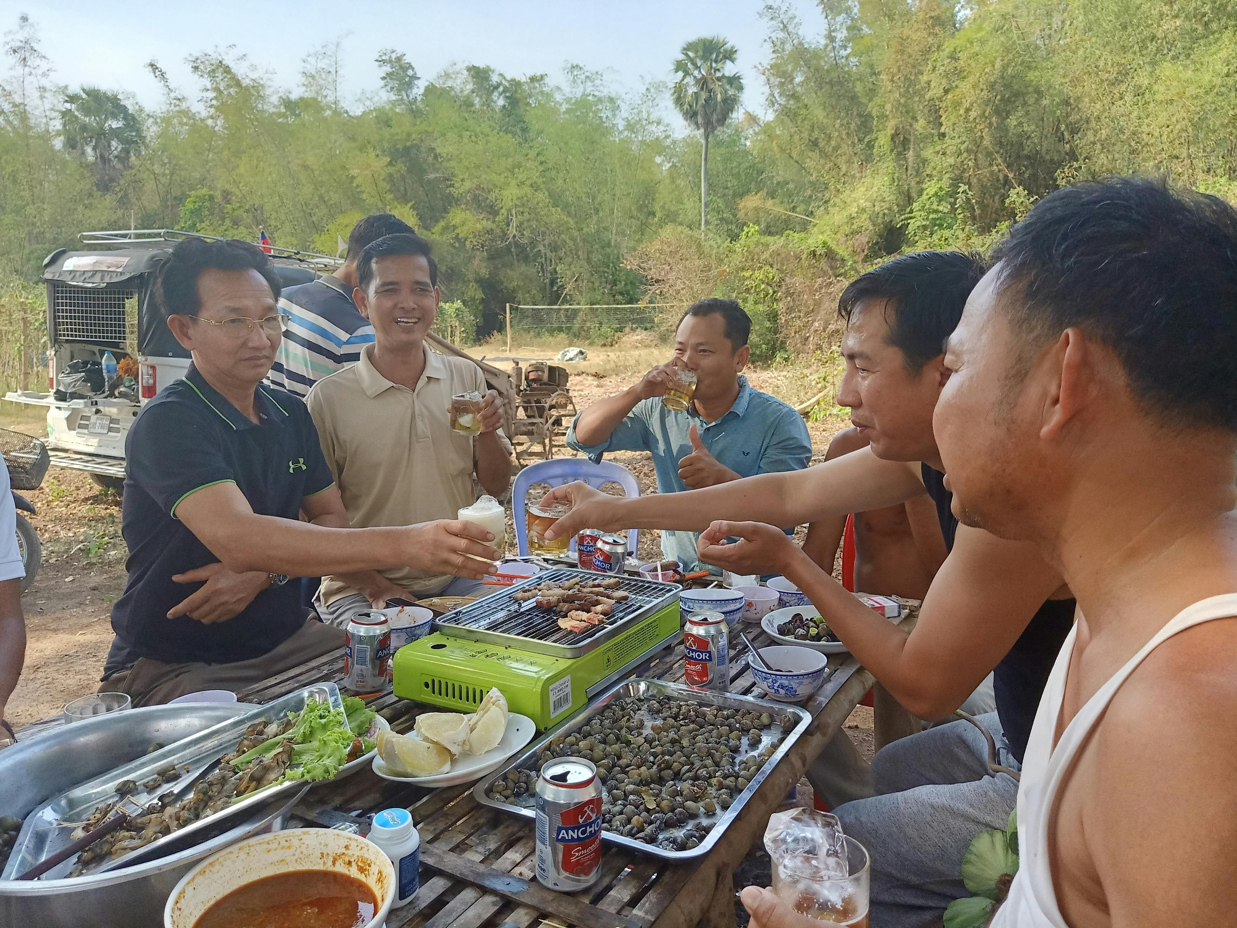 昨日は朝から釣りや、飼育、カンボジアの生活をさせていただき、昼から夜までずぅーとカンボジアのパーティに付き合いました。言い方笑