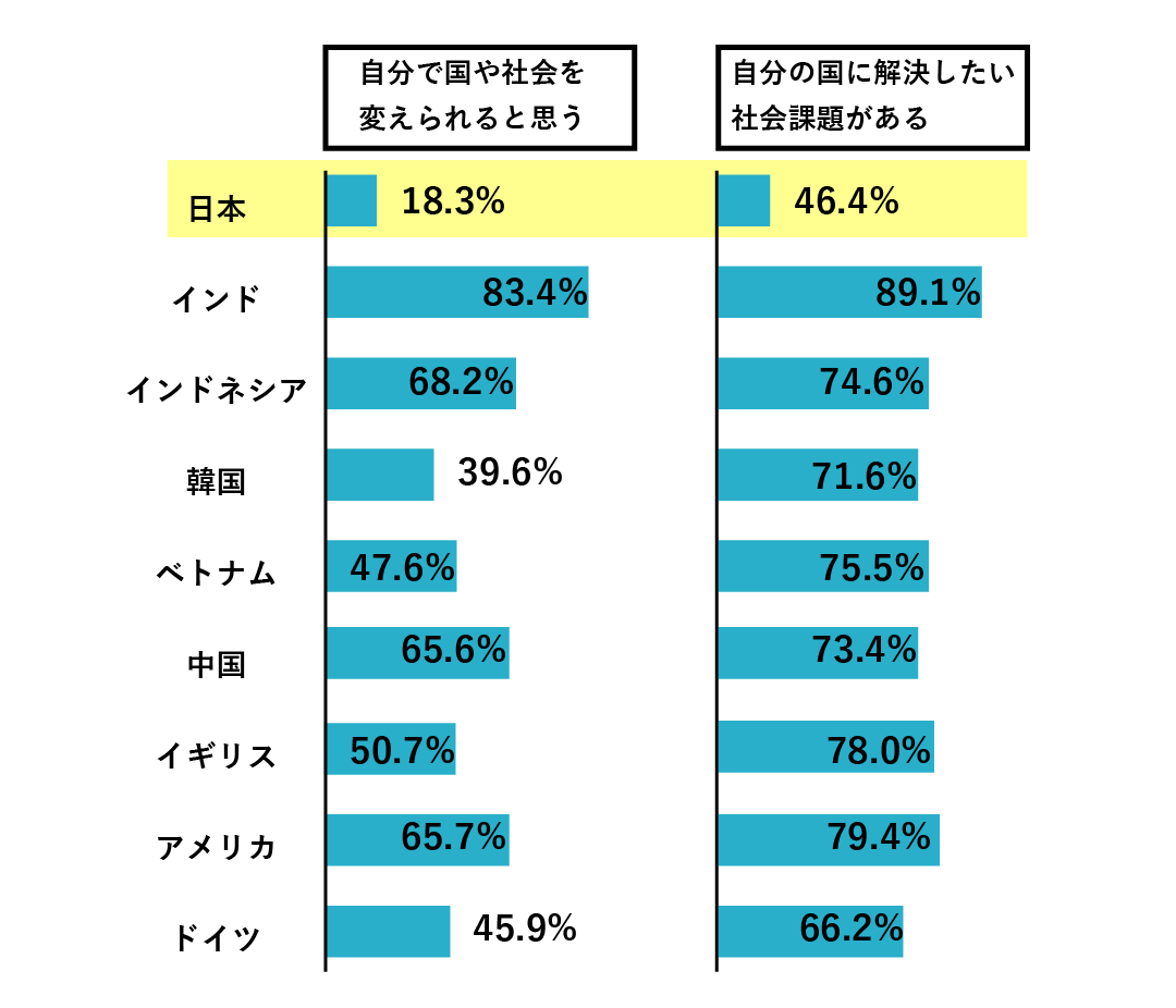 そんな時代の中心を担っていく若者たちの多くが「自分には社会を変えることはできない」と考えているのです。