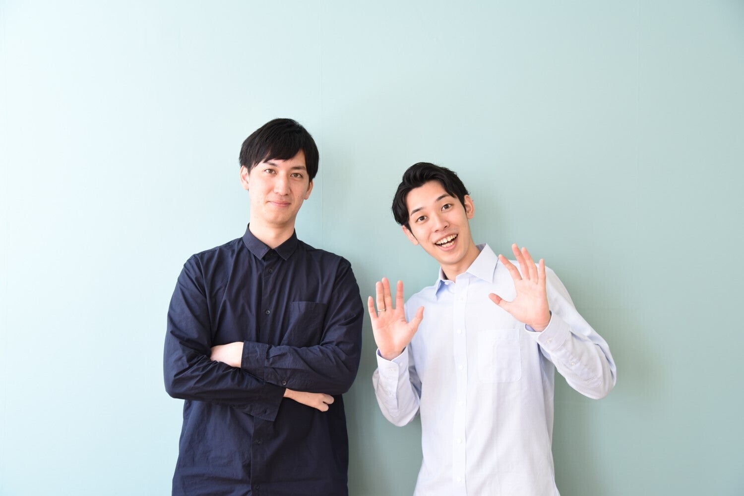 左に写っているのが、ともに事業を立ち上げている藤田。中学生のころからの同級生です。