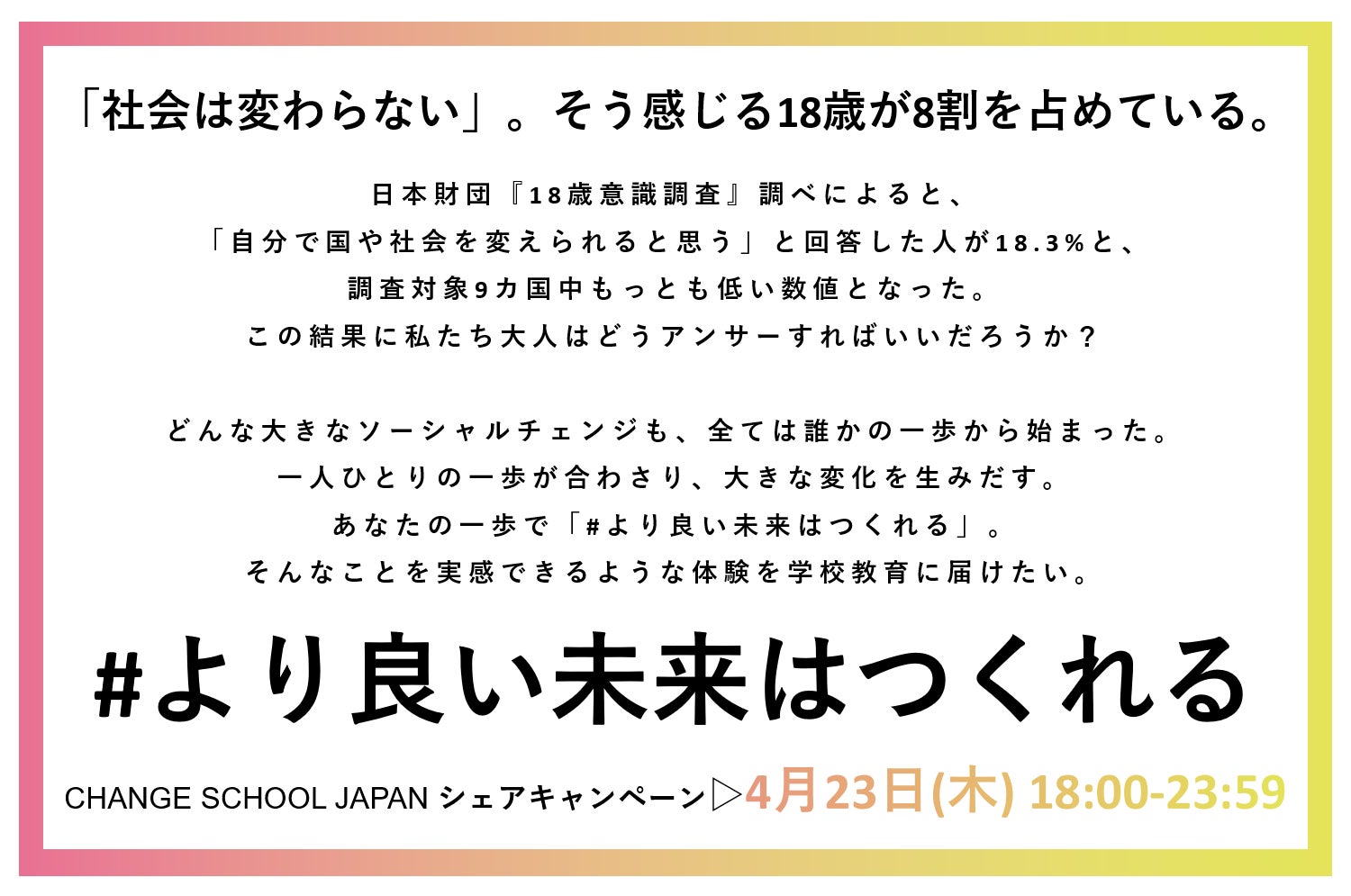 また引用リツイート(もしくはシェア)をされる際に、応援コメントやハッシュタグ「#より良い未来はつくれる」を書いていただくと、より効果が増大します。