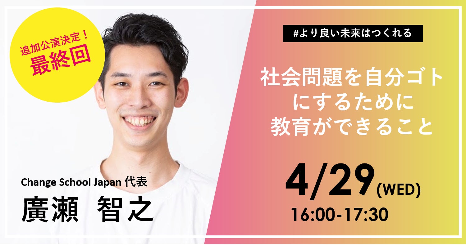 1.【追加公演決定・最終回!】社会問題を自分ゴトにするために教育ができること―CHANGE SCHOOL JAPANオンラインキャラバン企画―