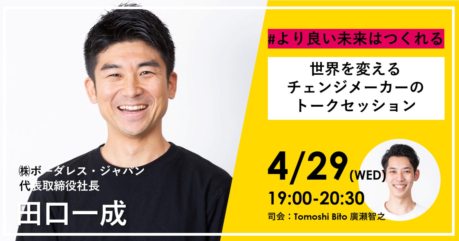 「#より良い未来は作れる」世界を変えるチェンジメーカーのトークセッション No.3 ボーダレス・ジャパン代表 田口一成編