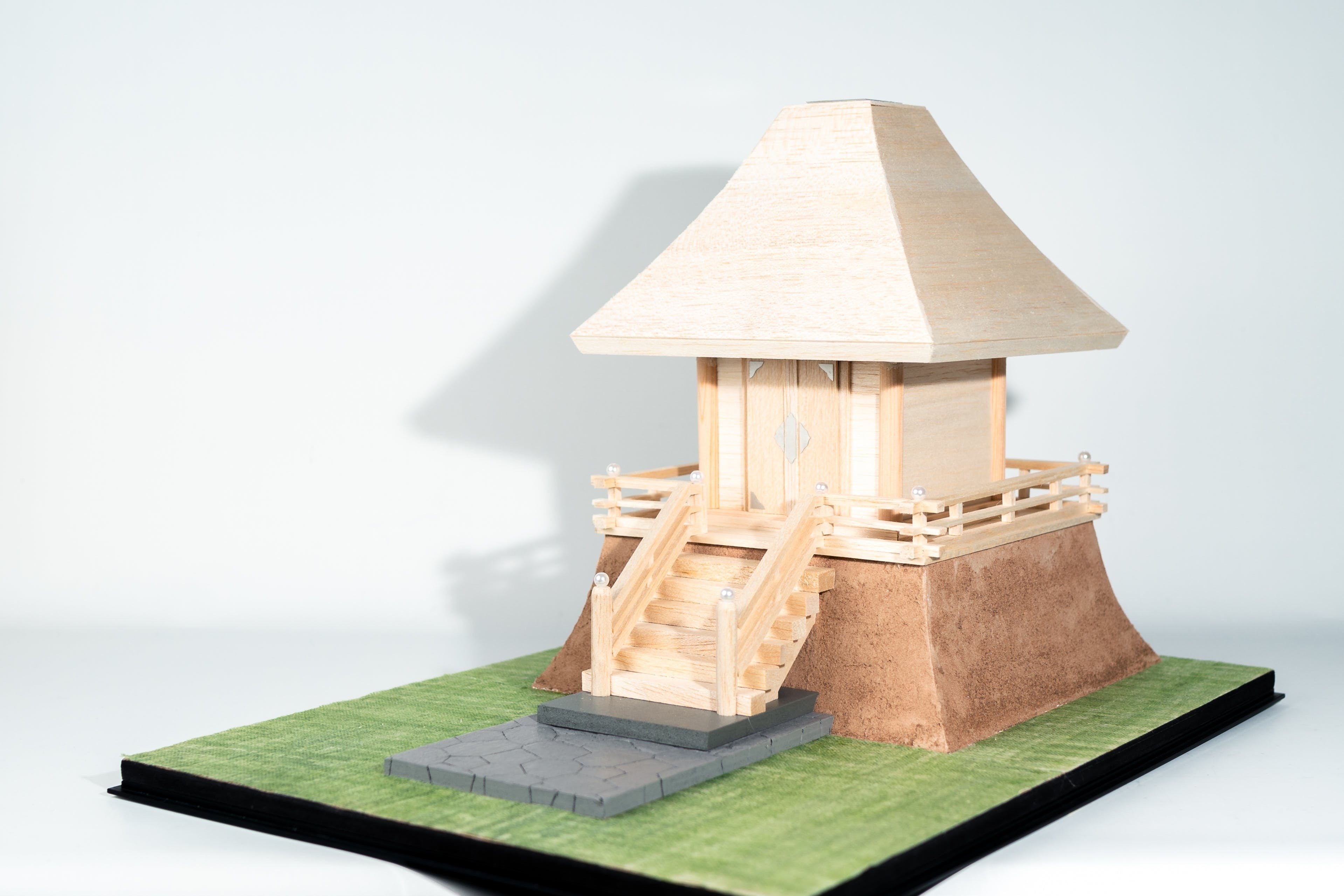 神社計画当初は、神明造りを基本とした格の高い意匠案を検討してましたが、ユーモアな活動からなるハゲ頭の雰囲気から欠け離れており、同じ境内である八幡造りの存在と呼応しながら、シンプルに”ひかり”をテーマにした神社とすることにしました。