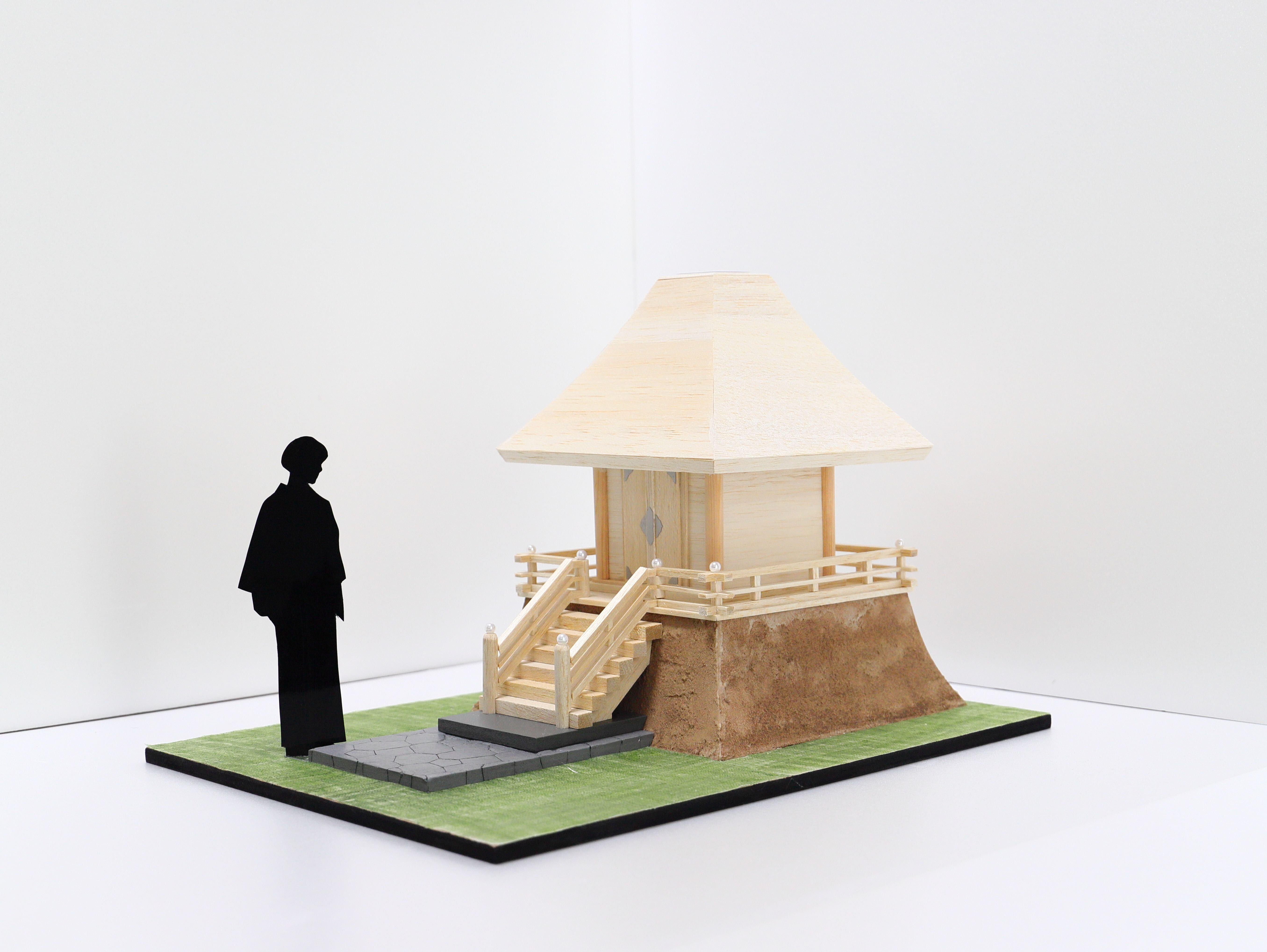2020(ツルツル)神社は、伝統的な様式を解き放ち、差異を意識した宝形造りと板葺きを基本とし、外観をより質素に保持しつつ、天からの柔和な光がまるで御神体から放たれたかのように、神秘で美しい本殿となります。本殿に玉祖命御神体が祀られるつくりとなります。
