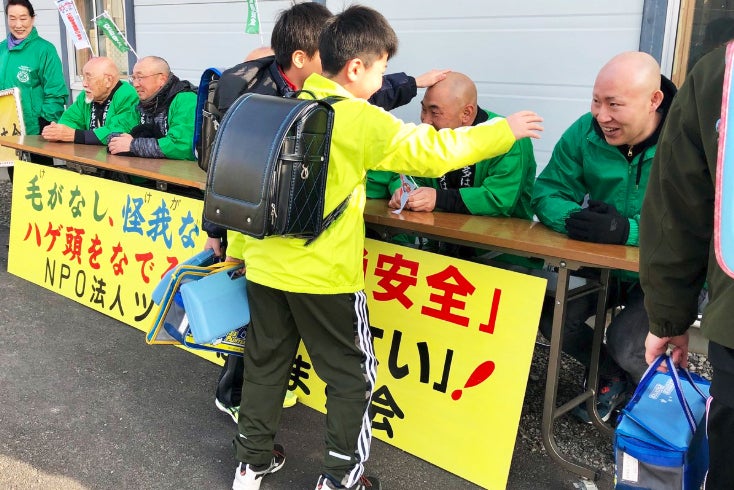 ハゲ頭で願掛け・交通安全運動