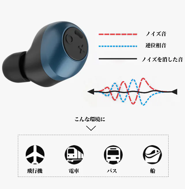 騒がしい場所に置いてもクリアな音声の通話が可能です。雑音と逆位相を重ね合わせることで雑音を中和し静かな環境が生まれます。