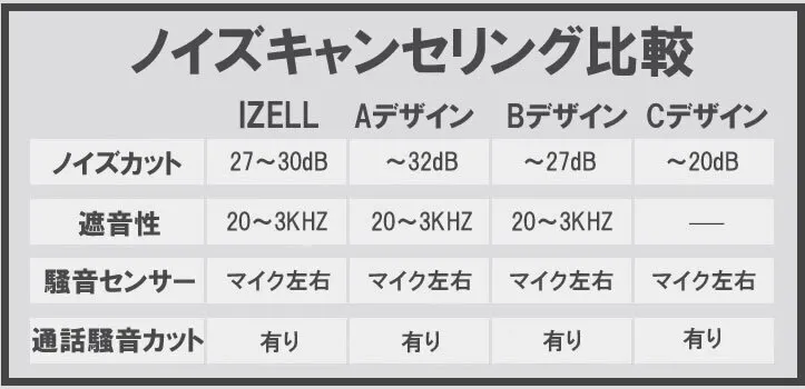 | ノイズキャンセリング | -28dB~-30dB |