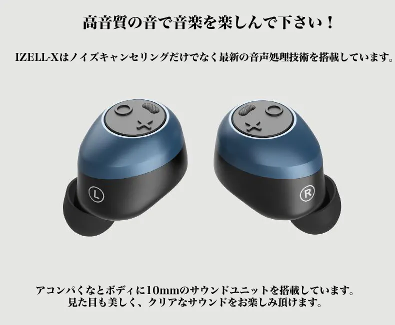 IZELLE-Xは左右独立型のノイズキャンセリングイヤホンです。