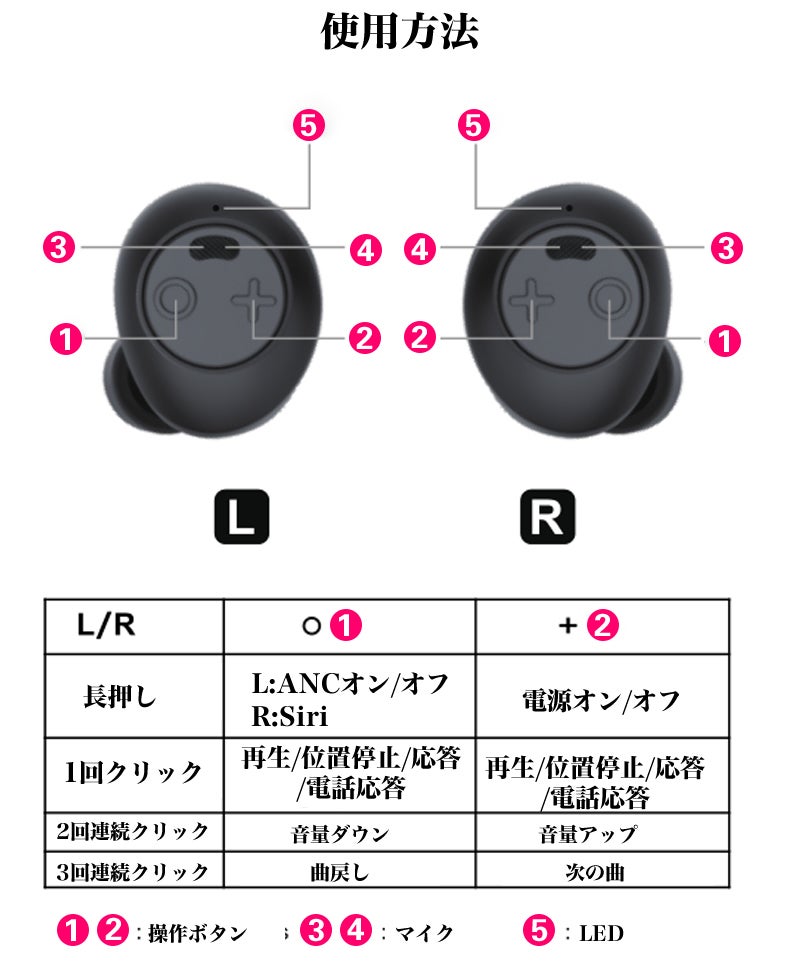 | ケース電池容量 | 70mAh/600mAH(充電ケース) |