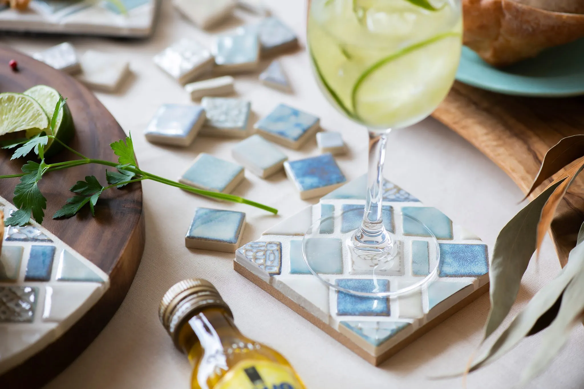 燕市のタイル作家蓮沼彩さんの手作りタイルコースターをお届け致します。