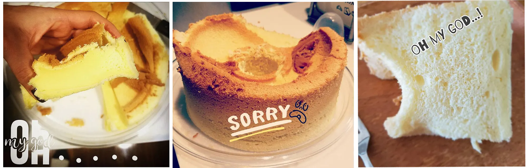 自慢のシフォンと言いましたが最初は失敗の連続で… ご飯の代わりに何度この失敗した固いケーキを食べたことやら、数えきれないほどです(苦笑