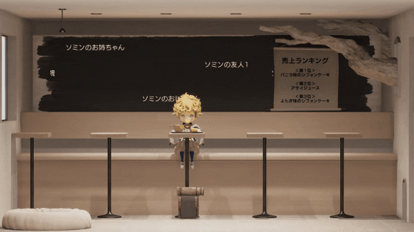 異世界住民が座っている背中の壁にあるボードにあなたの名前がスペシャルサンクスとして流れます! お連れさんと一緒にご来店した際、「このカフェの誕生を助けた俺(私)すごいだろー」と、ドヤ顔で自慢できちゃうんです(σ≧▽≦)σ
