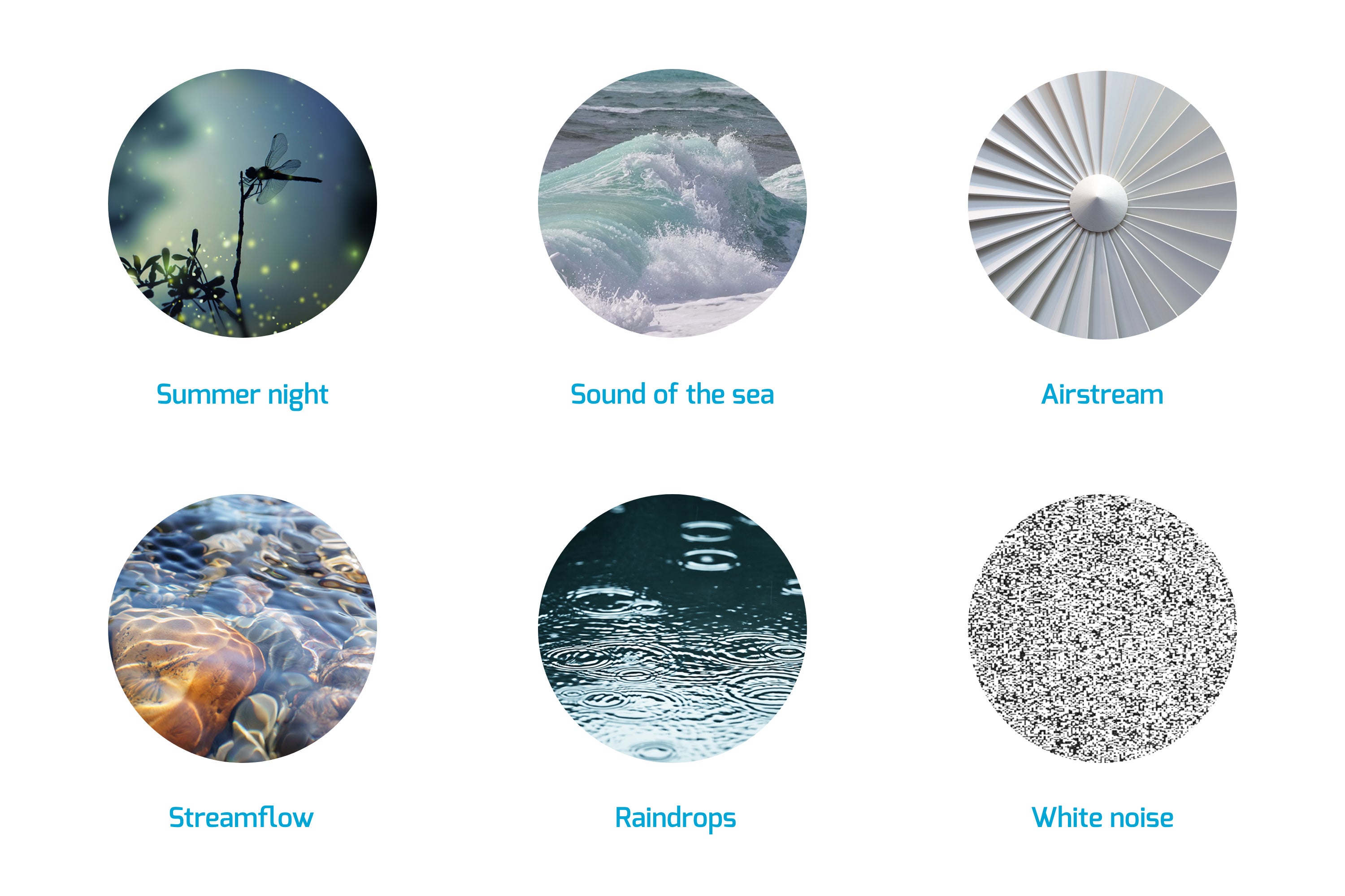 6種類の音を好きに選べます。あなた好みの音がやすらぎの空間を演出します。