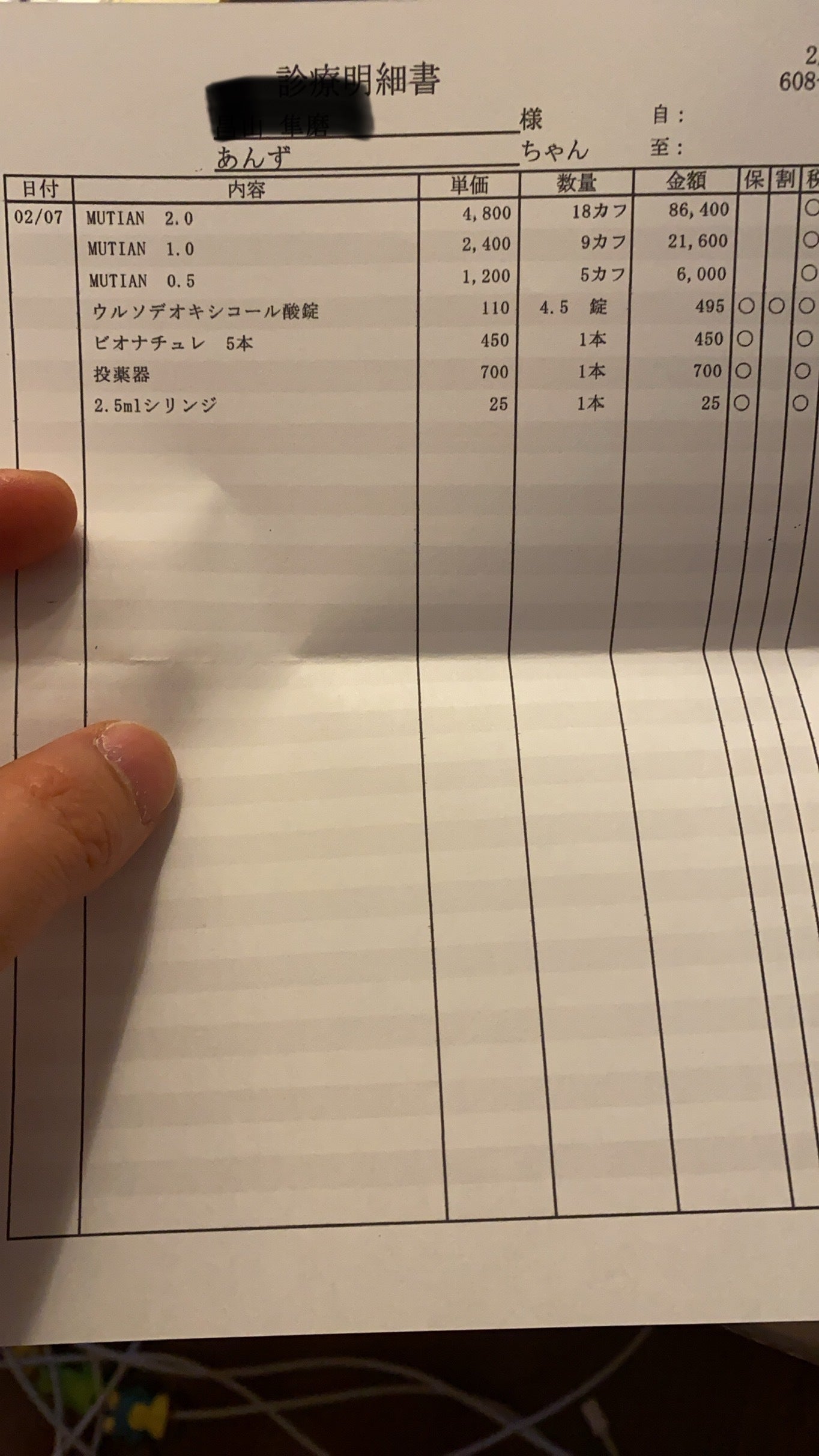 先ず第一回の診察と、投薬費用明細を掲載しておきます。