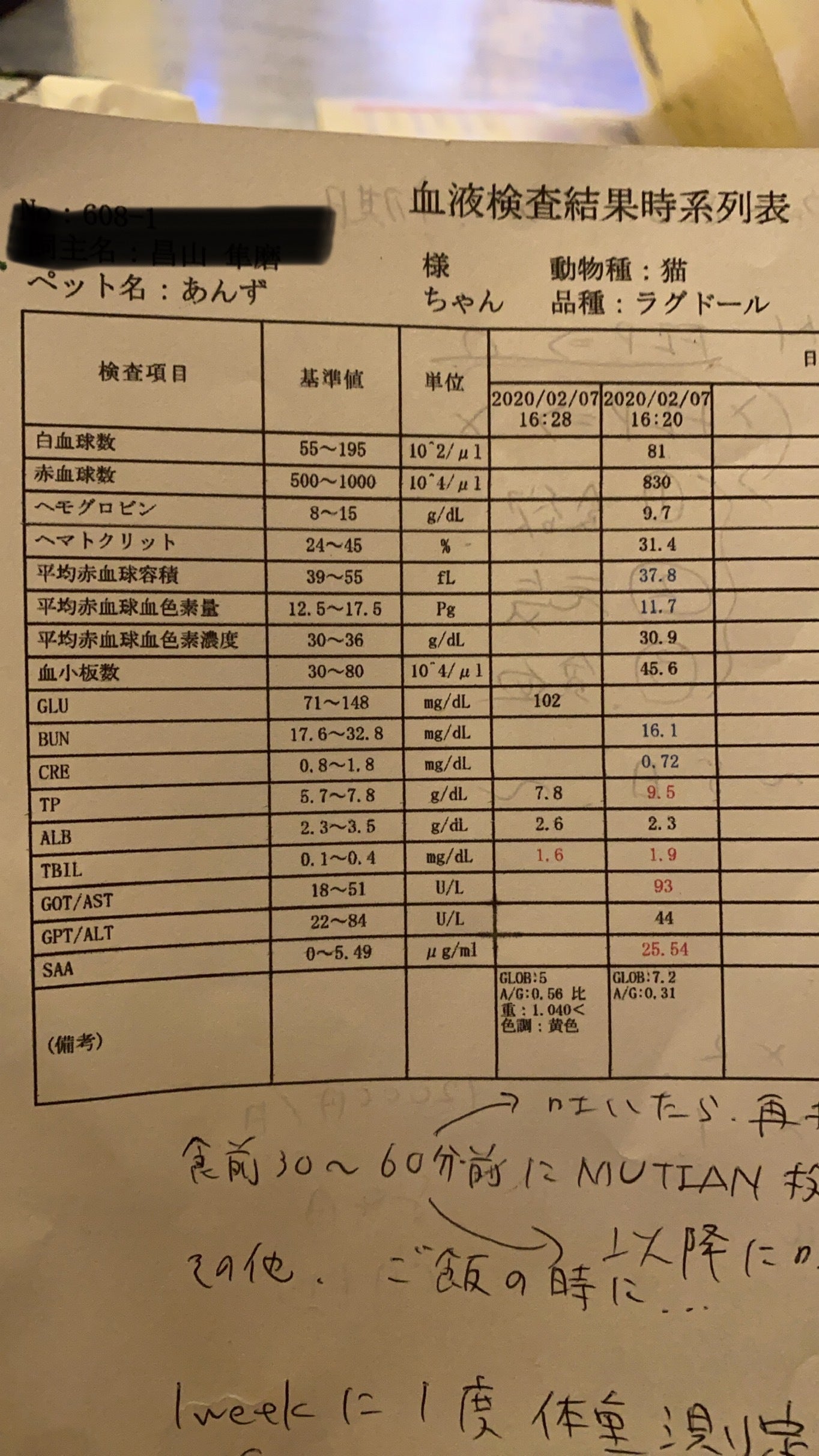 また、MUTIAN自体はFIPに対してしか効果がないため、先ずは投薬をスタートさせ、効けばFIP、効かなければFIPではないとも判断できるそうで、先んじて投薬をスタートさせることとなりました。