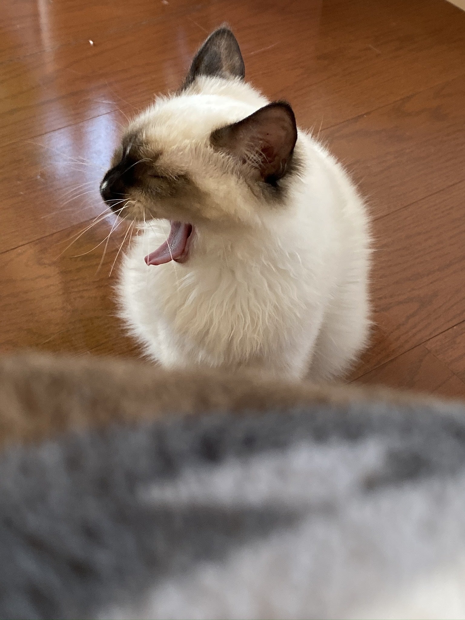 2020/03/06 15:47経過報告3/6すっかり世間は新型コロナウイルスの影響で大変ですね。皆さんは体調など崩されていないでしょうか・・・?飼い主はコロナの影響で忙殺されています・・・。かく言うあんずさんは自分がコロナ(コロナ違い)にやられているにもかかわらずご飯を楽しそうにモリモリモリモリ食べ、ドタバタ走り回り、後ろから襲ってくる位元気になっています。このまま治癒してくれないかと心底願っております。ただ、免疫が下がっているので猫カゼを併発してしまい、目が真っ赤になってしまいしばらくカラー生活を送る事になりました。カラーを付けると、テンションガタ落ち・・・。外した瞬間全力で遊びます・・・。経過は良好ですのでまたご報告させていただきます。 もっと見る