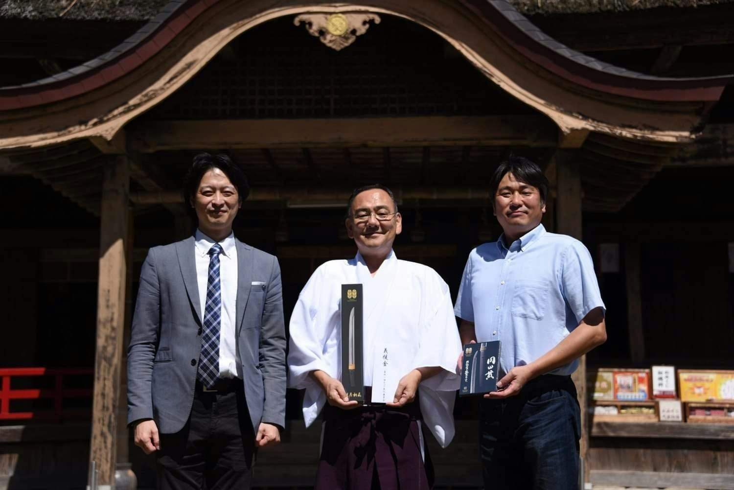 ご報告が遅くなりましたが、9月13日(日)に7月豪雨で甚大な被害に遭われた、熊本県人吉青井阿蘇神社に、デジタル図録同田貫通販の収益から水没奉納刀への義援金をお届けして参りました。(ステイホームで太りました…。恥)