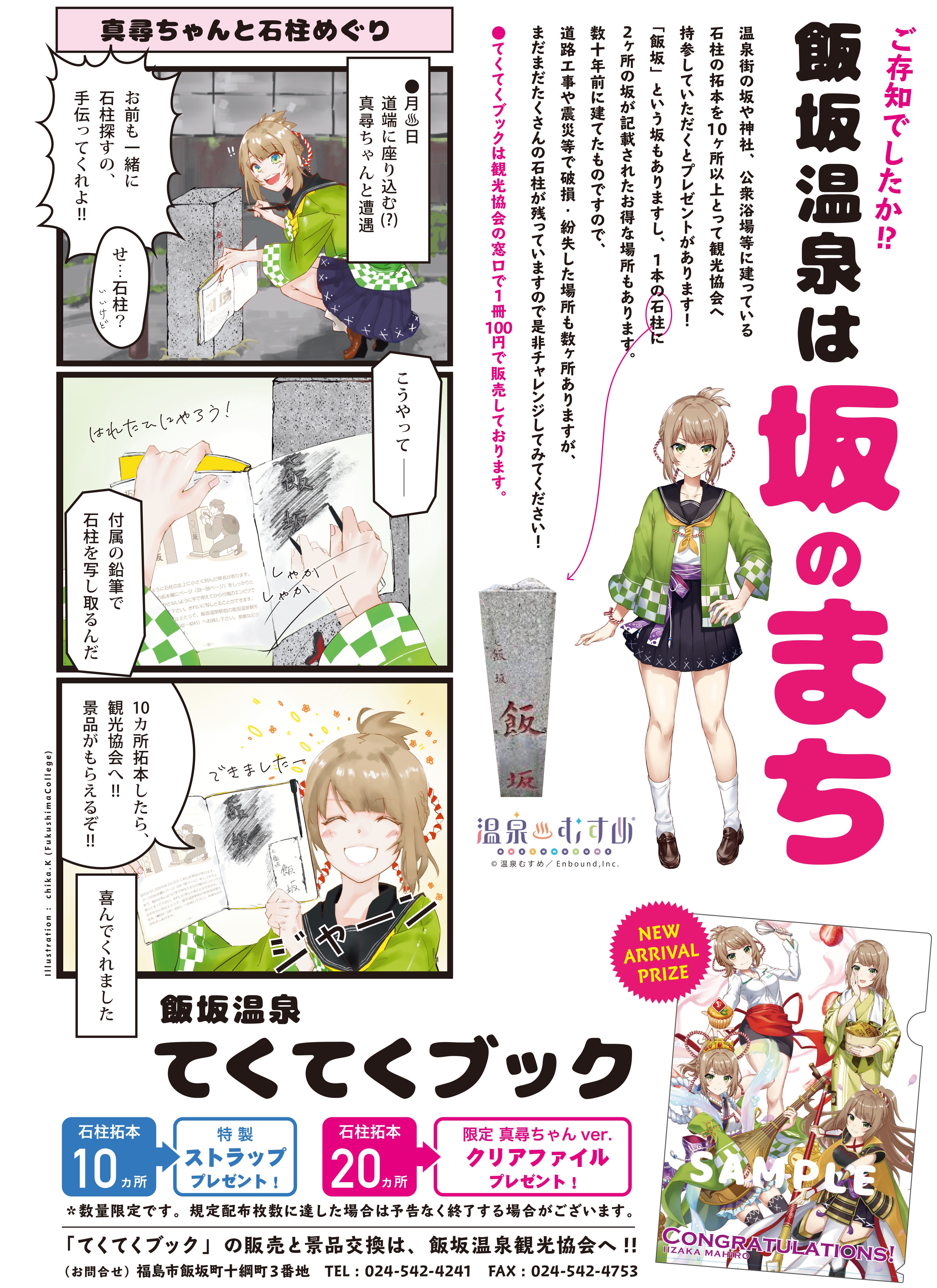 坂や名所旧跡、公衆浴場などを拓本してまわれる「てくてくブック」の景品に飯坂真尋ちゃん特別クリアファイルが追加されました♪