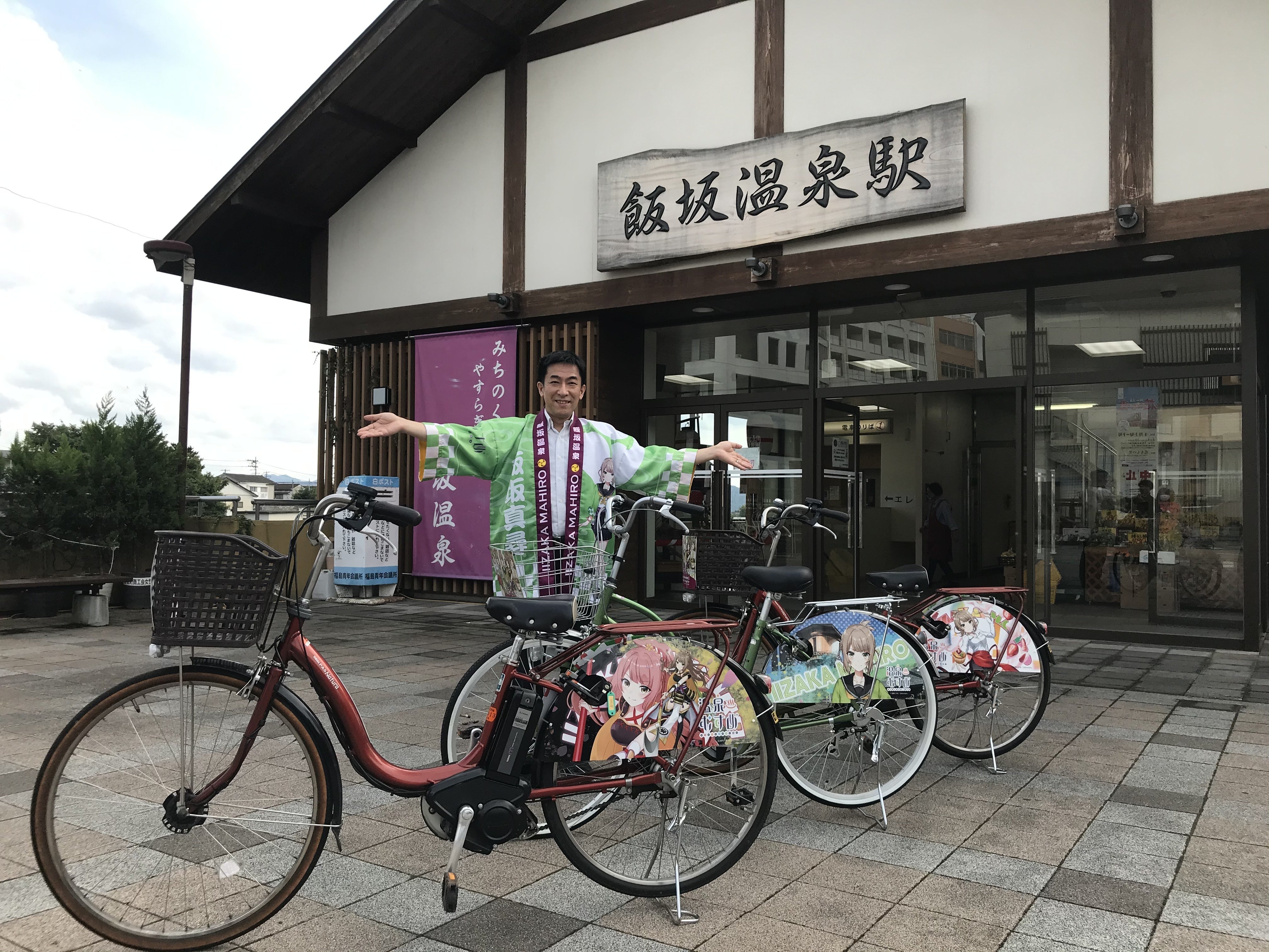 ラッピング自転車(ももりんレンタサイクル)は、飯坂温泉駅の窓口で借りることができます!